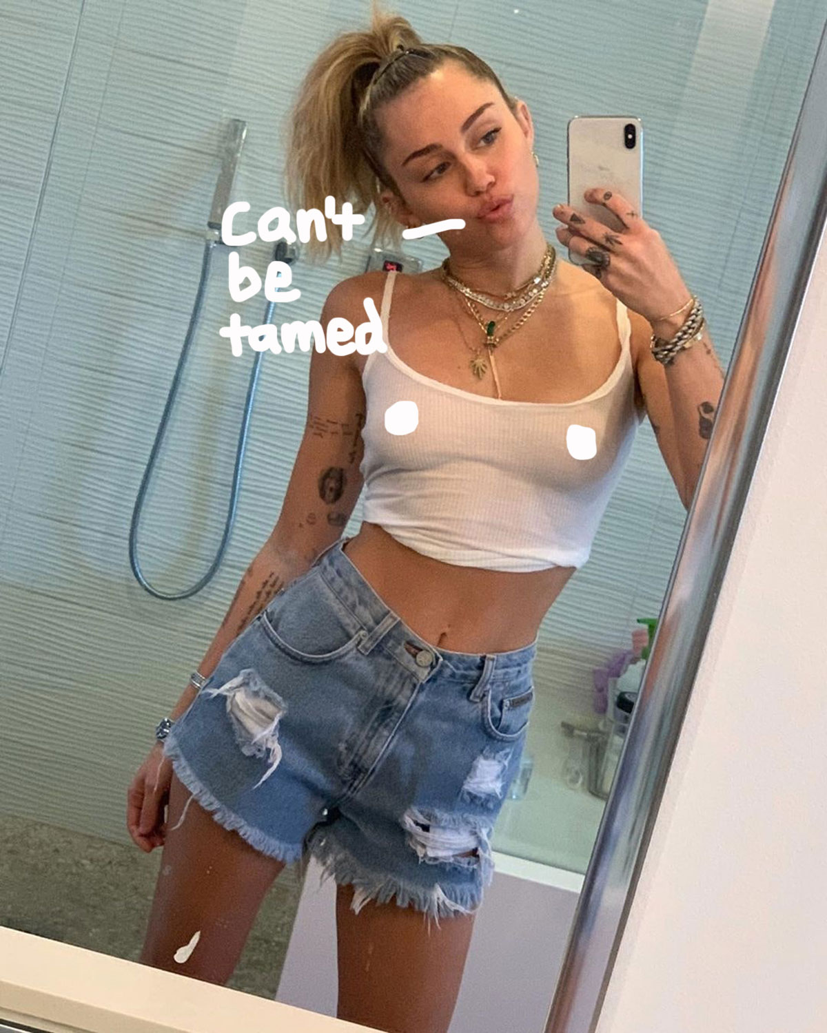 My tit's out?” Cyrus was heard saying before the show cut to commercial. Whether the nip slip was an accident or not (we're thinking not. Miley goes completely topless in the not-safe-for-work pics, proudly displaying her bare breasts as she makes a very sexually suggestive face. Miley Cyrus, When your boobs are smaller than your dreams 💙💙💙💙💙💙💙💙. Miley exposes a bit too much at the VMAs. Miley Cyrus Reckons Titties Over Guns, Trash Talks T-Swift's 'Bad Blood' HONEST TO GOD, it wouldn't be a week working in media without news of.